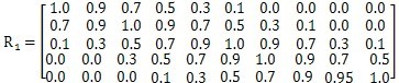 3.確定閾值及其矩陣  閾值即為轉(zhuǎn)折點(diǎn)值,可按某種規(guī)則取得,也可按照經(jīng)驗(yàn)或類比的方法獲得,或直接從角矩陣中獲得相對(duì)閾值,即在象矩陣中尋找最大、最小、中等閾值,方法如下: