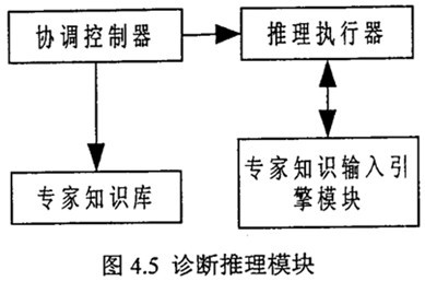 推理模塊是一個隱藏于后臺的推理計算模塊,它的結構如圖4.5,協(xié)調控制器用來管理各推理機的工作并協(xié)調推理執(zhí)行器與專家知識輸入引擎模塊可知,對一示同的故障,其“數(shù)據(jù)層”、“故障現(xiàn)象層”、“故障原因層”及其它們之間的連線關系絕不相同,協(xié)調控制器就是將“數(shù)據(jù)層”、“故障現(xiàn)象層”、“故障原因層”及其它們之間的連線關系自動轉化為推理進程關系,由推理執(zhí)行器完成推理診斷工作。