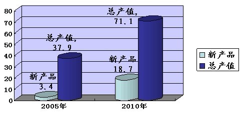 2005年新產(chǎn)品產(chǎn)值占總產(chǎn)值8.9%,2010年新產(chǎn)品產(chǎn)值占總產(chǎn)值26.3%