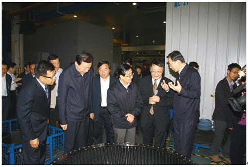 4月14日上午,在江蘇省委書記、省人大常委會主任羅志軍,江蘇省委副書記、省長李學(xué)勇及省市相關(guān)部門領(lǐng)導(dǎo)陪同下,由浙江省委書記、省人大常委會主任趙洪祝率領(lǐng)的浙江省黨政代表團(tuán)來到南高齒風(fēng)電產(chǎn)業(yè)園參觀考察。集團(tuán)公司董事長兼總經(jīng)理胡曰明等集團(tuán)公司領(lǐng)導(dǎo)率員工熱情接待了來賓。代表團(tuán)在參觀期間,詳細(xì)了解了南高齒生產(chǎn)研發(fā)、市場拓展、人才戰(zhàn)略和二次創(chuàng)業(yè)等各方面情況,對南高齒業(yè)已成為國際最大風(fēng)電裝備制造企業(yè)給予了高度評價,并充分肯定了南高齒為中國先進(jìn)制造業(yè)和綠色能源產(chǎn)業(yè)發(fā)展所起到的積極貢獻(xiàn),希望南高齒在2011年能有長足發(fā)展,二次創(chuàng)業(yè)工作越做越好。
