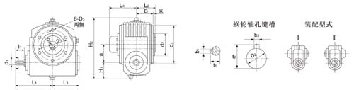 工作條件:減速機(jī)蝸桿軸轉(zhuǎn)數(shù)不超過1500r/min;工作環(huán)境溫度為-40~40℃,當(dāng)工作環(huán)境溫度低于0℃時(shí),啟動(dòng)前潤滑油必須加熱到0℃以上;減速機(jī)可正、反向運(yùn)轉(zhuǎn)。