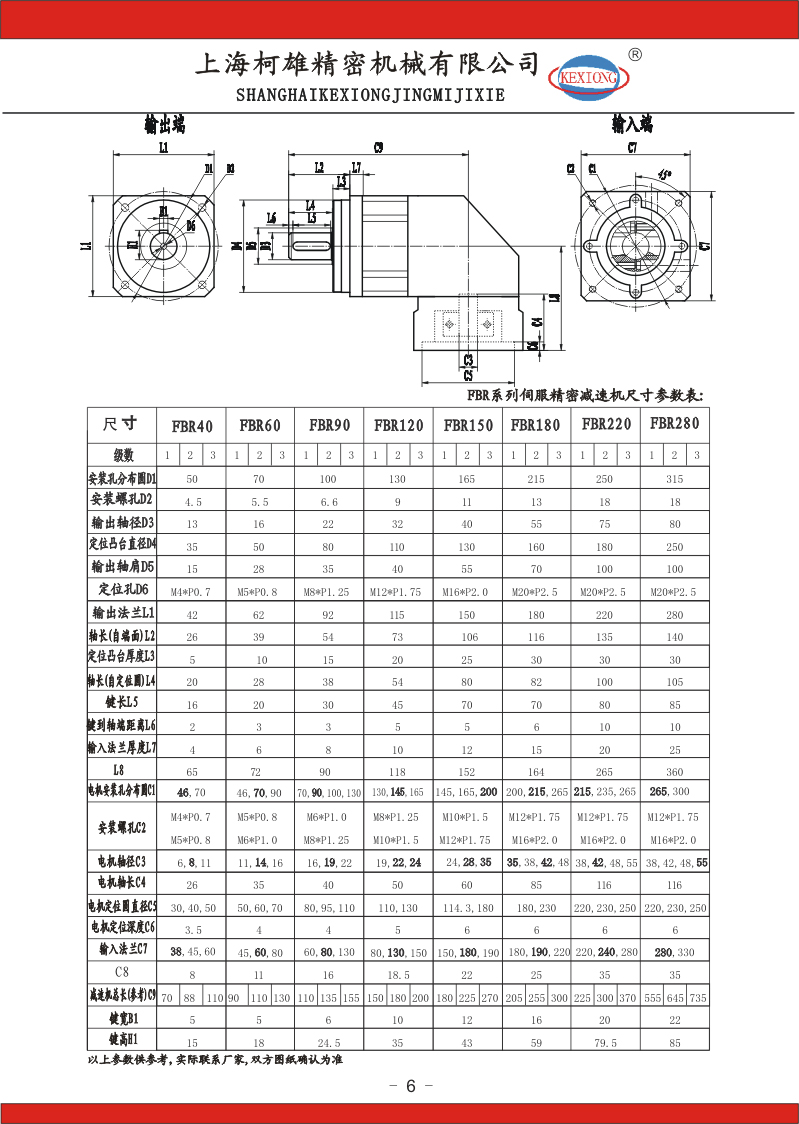 FBR系列伺服直角行星減速器參數(shù)及尺寸表: