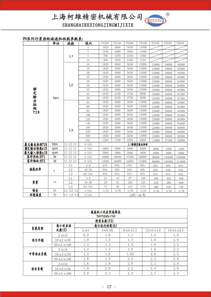 FN系列行星齒輪減速機參數(shù):