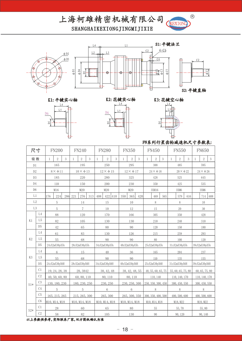 FN系列行星齒輪減速機尺寸及參數(shù)表: