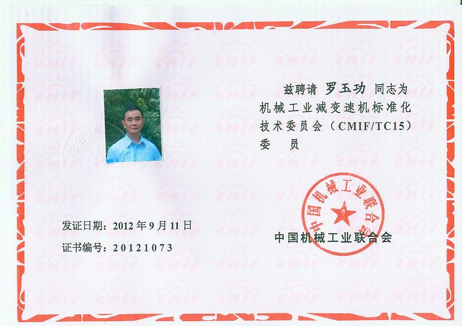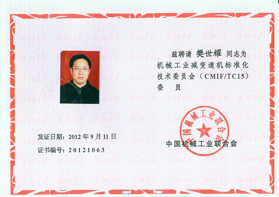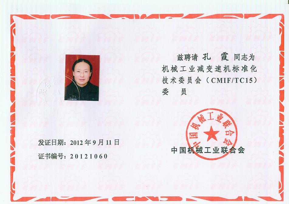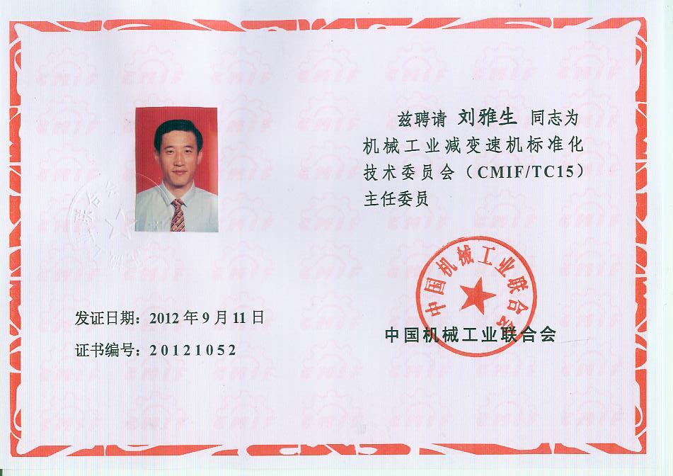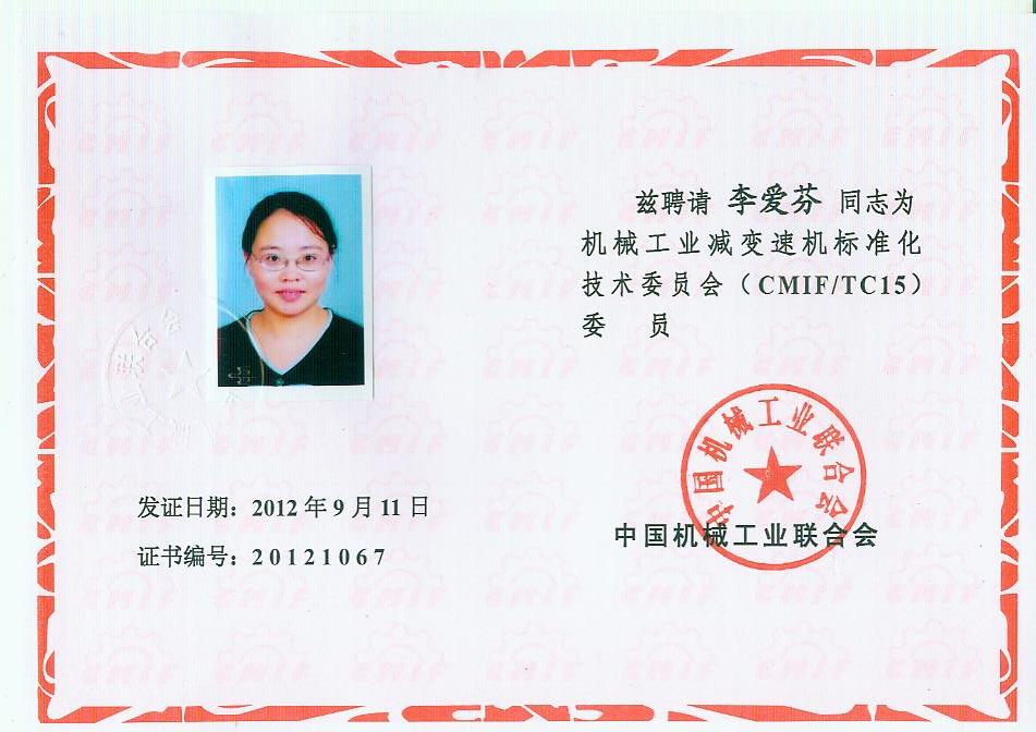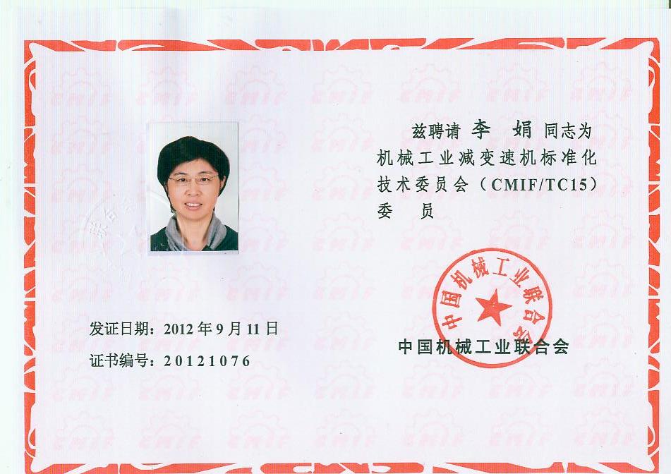 你會(huì)《關(guān)于報(bào)送機(jī)械工業(yè)減變速機(jī)標(biāo)準(zhǔn)化技術(shù)委員會(huì)(第二屆)換屆文件的函》(機(jī)減標(biāo)委秘字[2012]08號(hào))收悉。經(jīng)研究,同意機(jī)械工業(yè)減變速機(jī)標(biāo)準(zhǔn)化技術(shù)委員會(huì)換屆及組成方案。第二屆機(jī)械工業(yè)減變速機(jī)標(biāo)準(zhǔn)化技術(shù)委員會(huì)(CMIF/TC15)由29名委員、1名顧問組成(委員名單見附件),劉雅生任主任委員;王瑜、張謙、王金武、姜耀林任副主任委員;劉志新任委員兼秘書長;周有強(qiáng)任顧問。秘書處設(shè)在天津市石化通用機(jī)械研究所。
