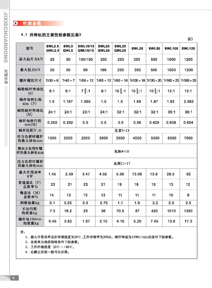 QWL系列蝸輪絲桿升降機(jī)是一種基礎(chǔ)起重部件,已列為JB/ZQ4391-86標(biāo)準(zhǔn)。承載能力2.5-120T。具有結(jié)構(gòu)緊湊,體積小,重量輕,動(dòng)力源廣泛。無(wú)噪音,安裝方便,使用靈活,功能多。配套形式多,可靠性高,使用壽命長(zhǎng)等許多優(yōu)點(diǎn)。具有提升、降落、推進(jìn)、翻轉(zhuǎn)等多種功能。可單臺(tái)也可組合使用,可能用電動(dòng)機(jī)或其他動(dòng)力直接帶動(dòng),也可手動(dòng)。有不同的結(jié)構(gòu)型式和裝配方式,提升高度可按用戶的要求制造,該裝置可以自鎖。
