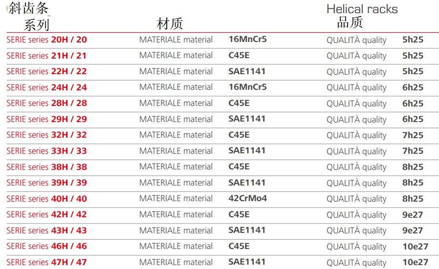 Gambini可使用不同類型的原材料生產(chǎn)高精度的直齒條和斜齒條。我們生產(chǎn)的齒條模數(shù)范圍為0.530,品質(zhì)等級范圍為510。品質(zhì)等級為5的齒條最大長度為1000mm,如果品質(zhì)等級為6,可生產(chǎn)的單件長度可達(dá)2000mm.