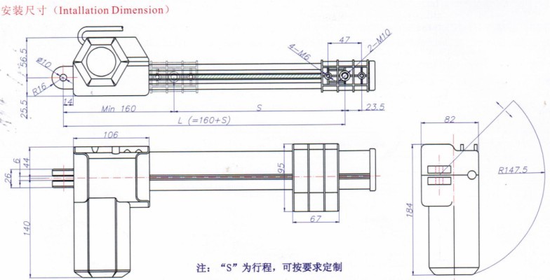 最長(zhǎng)安裝距離:L=160mm+S