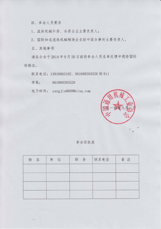 請各分會于2014年9月20日前將參會人員名單反饋中通協(xié)國際部楊潔