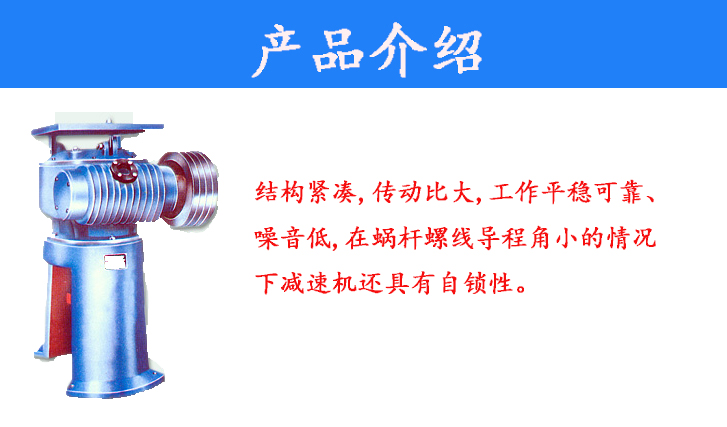 結(jié)構(gòu)緊湊,傳動(dòng)比大,工作平穩(wěn)可靠、噪音低,在蝸桿螺線導(dǎo)程角小的情況下減速機(jī)還具有自鎖性。