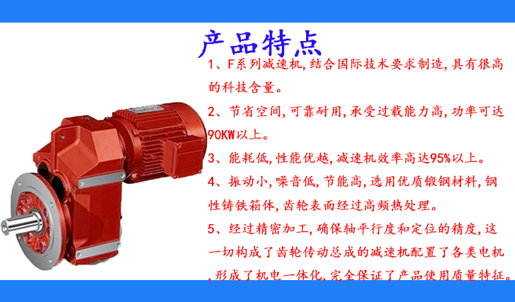 1、F系列減速機,結(jié)合國際技術要求制造,具有很高的科技含量。