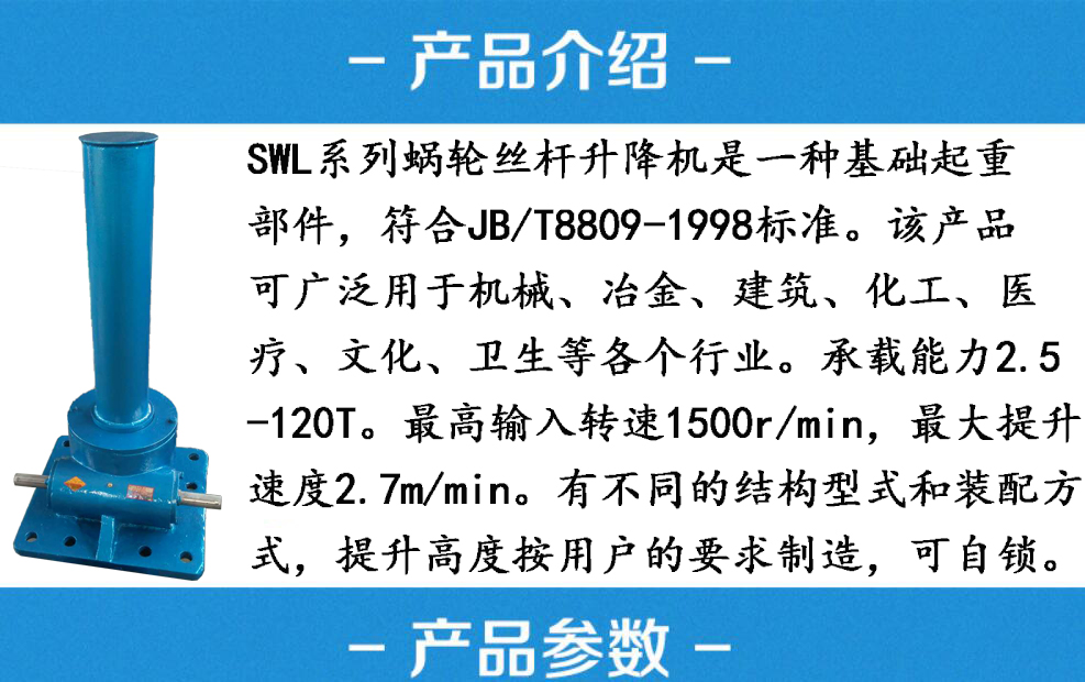SL系列蝸輪絲桿升降機是一種基礎(chǔ)起重部件,符合JB/T8809-1998(原JB/Z04391-86)標(biāo)準。