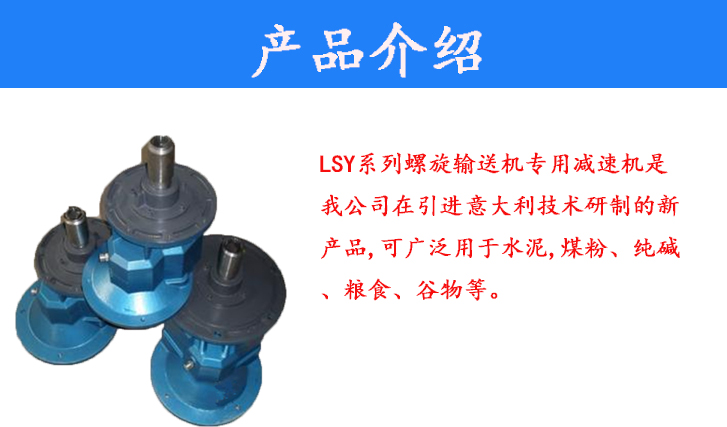 LSY系列螺旋輸送機專用減速機是我公司在引進意大利技術(shù)研制的新產(chǎn)品,可廣泛用于水泥,煤粉、純堿、糧食、谷物等。