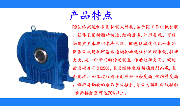 RD系列包絡(luò)減速機(jī)為齒輪傳動與蝸桿傳動復(fù)合而成的二級減速機(jī),具有承載能力大、傳動效率高、使用壽命長。