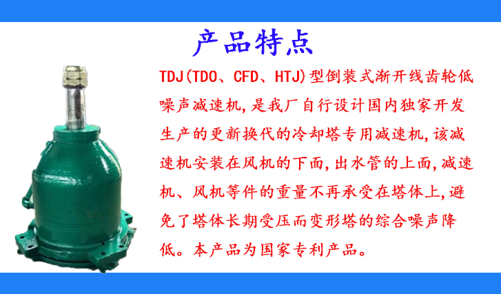 TDJ(TDO、CFD、HTJ)型倒裝式漸開線齒輪低噪聲減速機(jī),是我廠自行設(shè)計(jì)國內(nèi)獨(dú)家開發(fā)生產(chǎn)的更新?lián)Q代的冷卻塔專用減速機(jī),該減速機(jī)安裝在風(fēng)機(jī)的下面,出水管的上面,減速機(jī)、風(fēng)機(jī)等件的重量不再承受在塔體上,避免了塔體長期受壓而變形塔的綜合噪聲降低。本產(chǎn)品為國家專利產(chǎn)品。