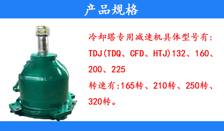 冷卻塔專用減速機(jī)具體型號有:TDJ(TDQ、CFD、HTJ)132、160、200、225