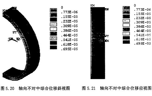 軸向不對中時(shí),根據(jù)實(shí)際情況取中量為△ax=5mm,則可以認(rèn)為外端面沿z軸方向的位移為5mm,如圖5.18所示。產(chǎn)生的附加的軸向載荷按照。選擇選擇Main Menu>>Solution>Define