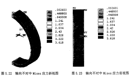 2.顯示節(jié)點(diǎn)的Von Mises應(yīng)力云圖;選擇Main Menu>General Postproc>Plot Result>NodalSolu,在彈出的對話框內(nèi)選擇“Stress”,第二欄內(nèi)選擇“Von Mises Stress”,則其顯示的云圖如圖5.22,5.23所示
