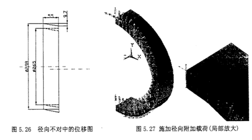 徑向不對中的模擬過程基本上類似軸向不對中,不同的是這時(shí)的位移變成了y軸方向的位移,如圖5.26所示。因此產(chǎn)生的附加載荷沿著y軸方向。故重復(fù)上節(jié)中的(1),(2),(3),(4),(5),(6)步驟。