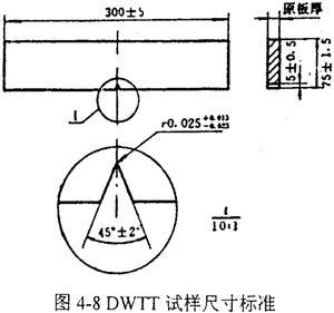 圖4-8和圖4-9分別表示DWTT的試樣標(biāo)準(zhǔn)和斷口形貌。