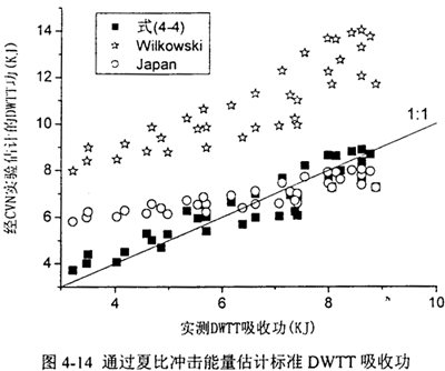 圖4-14將(4.2)~(4.4)式預(yù)測的對應(yīng)關(guān)系同真實實驗結(jié)果做了對比?梢钥吹綄τ谙嘟腃VN韌性預(yù)測結(jié)果,實際的DWTT功從低到高在大范圍內(nèi)分布。