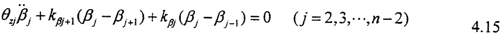 當忽略軸承對轉(zhuǎn)子扭轉(zhuǎn)振動的阻尼影響時,則第j個質(zhì)點的扭矩自由振動方程為: