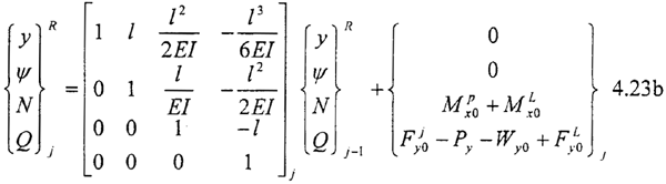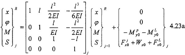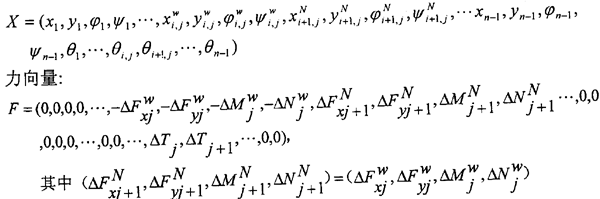 為總剛度陣,乃是因為式(4.20)還不是彎扭耦合振動方程的最終形式。這是因為1):式(4.20)右端含有未知力ΔFxjk,ΔFyjk,ΔMjk,ΔNjk,ΔTj,(k=w,N),方程組中未知量個數多于方程個數;2):ΔFxjk,ΔFyjk,ΔMjk,ΔNjk,ΔTj,(k=w,N)是本征的。必須解決上述這兩個問題,才能得到彎扭耦合振動方程。因而我們還需要尋求一種關系,通過這種關系,解決上述兩個問題,使得各轉子的彎扭振動及轉子間的彎扭振動耦合起來,并使彎扭耦合振動的方程組有定解,即最終使(4.20)式化為如下標準形式