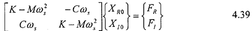 其中為FR為實部,為Fl的虛部,ωs為激振頻率,設式(4.36)的解為