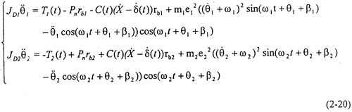 由于θ,,前面的系數(shù)和時(shí)變剛度K(t)及θ,,有關(guān),不是常數(shù),故方程組(2-14)也是一個(gè)非線性時(shí)變方程組。