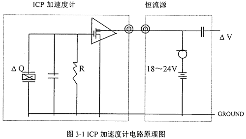 典型的集成壓電式(ICP)加速度計是在傳統(tǒng)的壓電加速度計基礎(chǔ)上耦合一個以場效應(yīng)管為核心的內(nèi)裝放大器電路所構(gòu)成。電路原理如圖3-1所示。