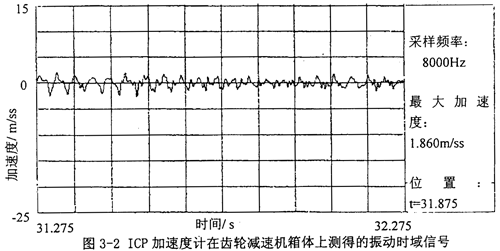 由于齒輪減速機是由齒輪、傳動軸和軸承等傳動部件及箱體、箱蓋等支撐部件組成,傳動部件在發(fā)生故障時,故障振動頻率可覆蓋幾Hz至數(shù)kHz的范圍。因此,齒輪減速箱的振動信號不能采用位移和速度傳感器來拾取,而只能用加速度傳感器來拾取。通常加速度傳感器一般采用電荷輸出型的壓電加速度計,這種加速度計體積小、重量輕、價格便宜。但由于它要和電荷放大器配合使用,因而在傳感器與阻抗變換放大器之間就有一段高阻抗信號輸送的聯(lián)接,故降低了系統(tǒng)的低頻性能、分辨率、抗干擾能力和穩(wěn)定性等方面水平。為了改變這種現(xiàn)象,便發(fā)展了集成形式的壓電傳感器-即ICP加速度計,它將阻抗變換放大器封裝在傳感器的剛性殼體內(nèi)。