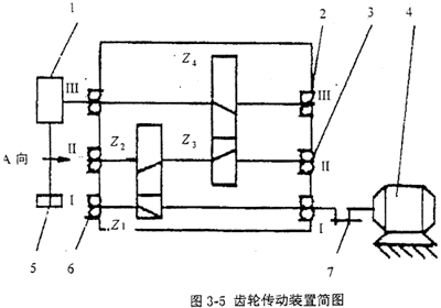 裝有齒輪、軸和軸承的軸系是齒輪傳動裝置的關(guān)鍵部件。在齒輪傳動裝置的工作過程中,箱體與其內(nèi)部的軸系部件構(gòu)成一個振動耦合體系,見圖3-4。軸系部件的振動通過軸承激發(fā)箱體振動,這樣在軸承外圈上安裝套圈并粘貼應(yīng)變片,拾取套圈上的應(yīng)變信號,也就是對齒輪傳動裝置箱體所受的動態(tài)激勵力信號進行測試和分析,就可對齒輪傳動裝置內(nèi)的軸系部件進行故障診斷。這種振動測試故障診斷的方法優(yōu)點是能直接拾取齒輪傳動裝置內(nèi)的軸系部件的振動故障信號,頻響范圍寬,費用低。缺點是需專門制做套圈。