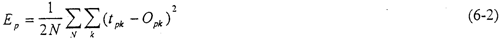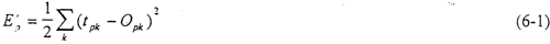 前饋網(wǎng)絡(luò)的訓(xùn)練學(xué)習(xí)是一種監(jiān)督學(xué)習(xí),而監(jiān)督學(xué)習(xí)的范例要求每一個輸入模式矢量與表示所期望的輸出模式矢量必須配對。一般說來,網(wǎng)絡(luò)輸出值{OPK}與期望的輸出值{tPK}是不相等的。對每一個輸入模式的模式樣本,其平方誤差
