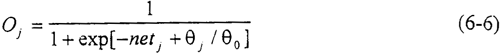 其中Wji為隱層的節(jié)點j與輸入層的節(jié)點i之間的連接權(quán)值,θj為隱層節(jié)點j的閥值,而f為節(jié)點的激勵函數(shù),可采取如下單調(diào)遞增的激勵函數(shù):