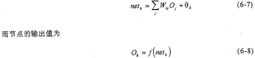 對于圖6-1所示的網(wǎng)絡(luò),其訓(xùn)練學(xué)習(xí)的過程包括:1)網(wǎng)絡(luò)內(nèi)部的前向計算;2)誤差的反向傳播。其主要目的就是通過逐步調(diào)整網(wǎng)絡(luò)的內(nèi)部連接權(quán)值,使網(wǎng)絡(luò)的均方誤差達到我們的要求。網(wǎng)絡(luò)內(nèi)部的連接權(quán)值的調(diào)整,都是采用推廣的δ規(guī)則來完成的。
