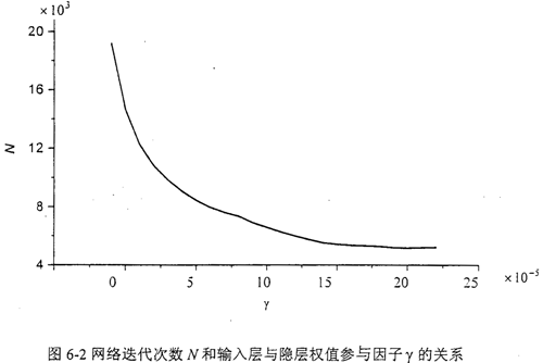 以表6-1標(biāo)準(zhǔn)訓(xùn)練樣本為例,采用MBP法,網(wǎng)絡(luò)有較好的收斂性,訓(xùn)練速度有較大的提高,見圖6-2。圖中,當(dāng)γ=0時(shí),MBP法即為普通的BP算法。