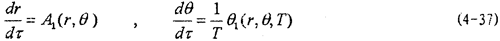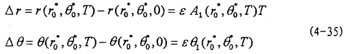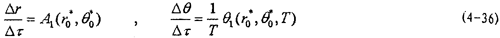 這就是對應(yīng)于(4-2)式的頻閃差分方程,即(4-2)式在Poicare平面上以T為周期的點(diǎn)變換方程。如ε充分小,則可令△τ=dτ,△r=dr,△θ=dθ,此外,(4-36)中的