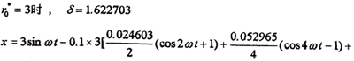 為了說明柴油機(jī)閃—諧波平衡法的正確性和精度,我們分別用一個(gè)簡單例子和大撓度彈性聯(lián)軸器系統(tǒng)(4-2)進(jìn)行計(jì)算,同時(shí)與相應(yīng)的數(shù)值仿真計(jì)算作比較。