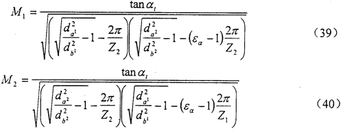 式中da1(da2)、db1(db2)、Z1(Z2)分別為小輪(大輪)的齒頂圓,基圓直徑和齒數(shù);αt為端面分度圓嚙合角,見(jiàn)式(29),εα為端面重合度,見(jiàn)式(36)。