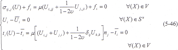 對(duì)于三維彈性問(wèn)題,若以位移為其本未知量,則其基本微分方程和邊界條件可表示為