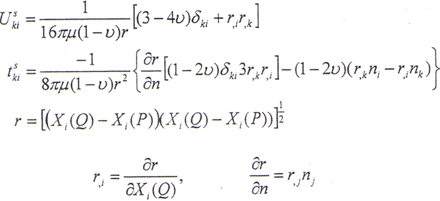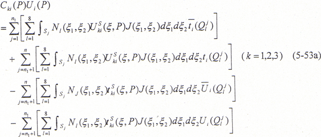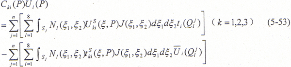 Uli=∫ΓPkUiK*dΓ+∫∫ΩbkUlK*Plk*dΓ (5-40)