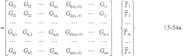將(5-40)式離散并用矩陣表示,則可得共軛鼓形齒輪傳動(dòng)的接觸邊界元方程