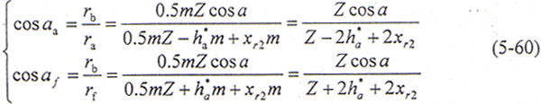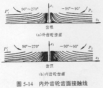 角標(biāo)Ⅰ、Ⅱ——相應(yīng)兩個(gè)接觸的相互共軛的鼓形外齒輪和直齒內(nèi)齒輪;