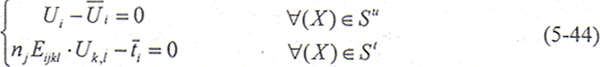 用高斯消去法求解線(xiàn)性方程組(5-42),便可求得所有邊界未知位移分量U和接觸面力分量T。