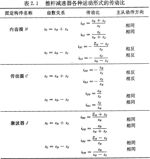 并且ZN應(yīng)是ZJ的整數(shù)倍。當(dāng)式(2.1)取“+ ”號(hào)時(shí),推桿減速器為正向結(jié)構(gòu),取“—”號(hào)時(shí)為反向結(jié)構(gòu)。