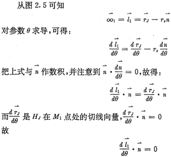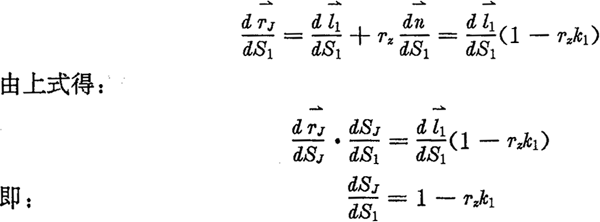 下面再推導(dǎo)一下齒廓及其法向等距線的相對(duì)曲率關(guān)系。設(shè)HJ的孤長(zhǎng)參數(shù)為SJ,相對(duì)曲率為kJ,而H1的孤長(zhǎng)參數(shù)為S1,相對(duì)曲率為k1,由微分幾何可得: