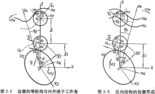 本章根據(jù)推桿減速器的結(jié)構(gòu)特征,找出了推桿內(nèi)外滾子工作角之間的關(guān)系。這種關(guān)系不僅適用于激波器廓形為偏心圓的單激波推桿減速器結(jié)構(gòu),而且也適用于激波器廓形為非圓弧曲線的多激波推桿減速器。利用內(nèi)外滾子工作角之間的關(guān)粵和法向等距線的幾何性質(zhì),首次分析研究了激波器廓形為任意形狀非圓弧曲線的多激波推桿減速器的齒廓形成理論,與傳統(tǒng)的包絡(luò)法相比,具有概念清晰,所得公式形式簡(jiǎn)單的特點(diǎn),通過(guò)實(shí)例計(jì)算,證明了激波器為偏心圓的推桿減速器,其內(nèi)齒圈齒廓曲線不是擺線這一重要結(jié)論。