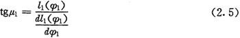 由微分幾何知,曲線Hl的向徑與切線正方向的夾角μ1可由下式計(jì)算: