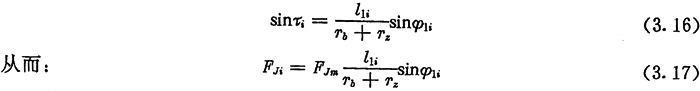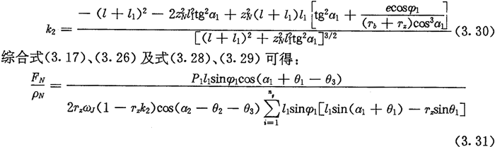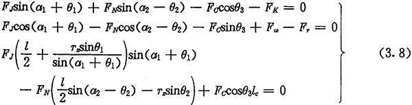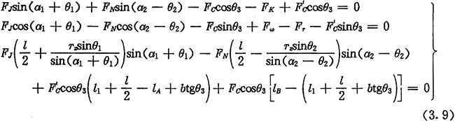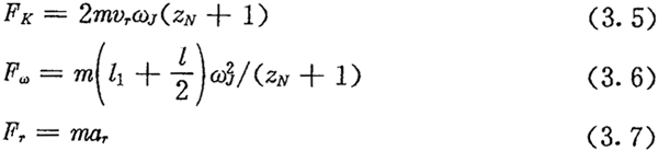 由于考慮了慣性力,所以力Fc不通過(guò)交點(diǎn)Q,lc也是一個(gè)未知數(shù)。若根據(jù)輸入功率確定出FJ,則方程組(3.8)只剩下FN、FC及l(fā)c三個(gè)未知數(shù)了。