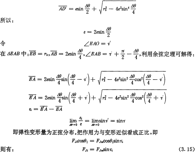 上式中:FJm為對(duì)應(yīng)最大變形處的作用力;FJi為激波器對(duì)第i個(gè)推桿的作用力;τi為第i個(gè)推桿內(nèi)滾子中心與激波器短軸所夾的圓心角。如圖3.2所示。